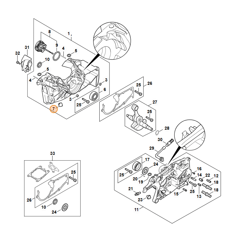 🔗 Kľuková skriňa STIHL MS 462 (pre prípady, kedy dlhodobo chýbajúci doraz spôsobil poškodenie uloženia).