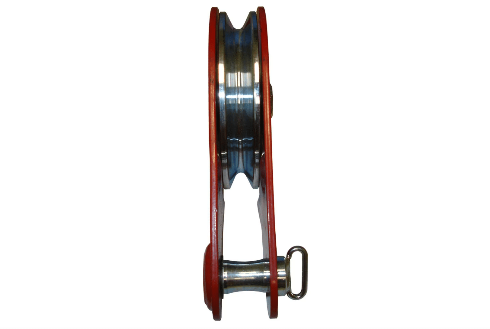 Smerová kladka s pevnými bočnicami v červenej farbe.