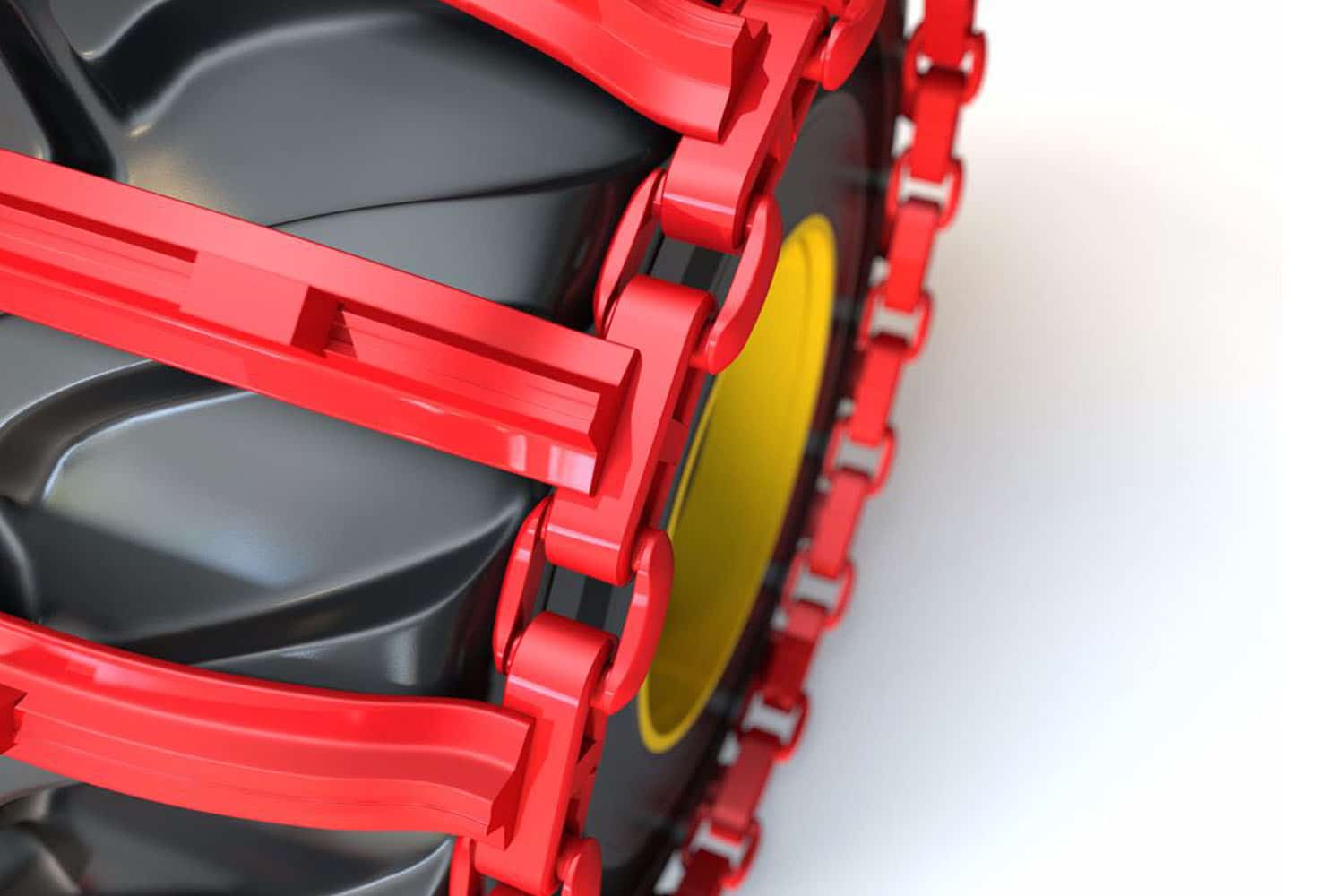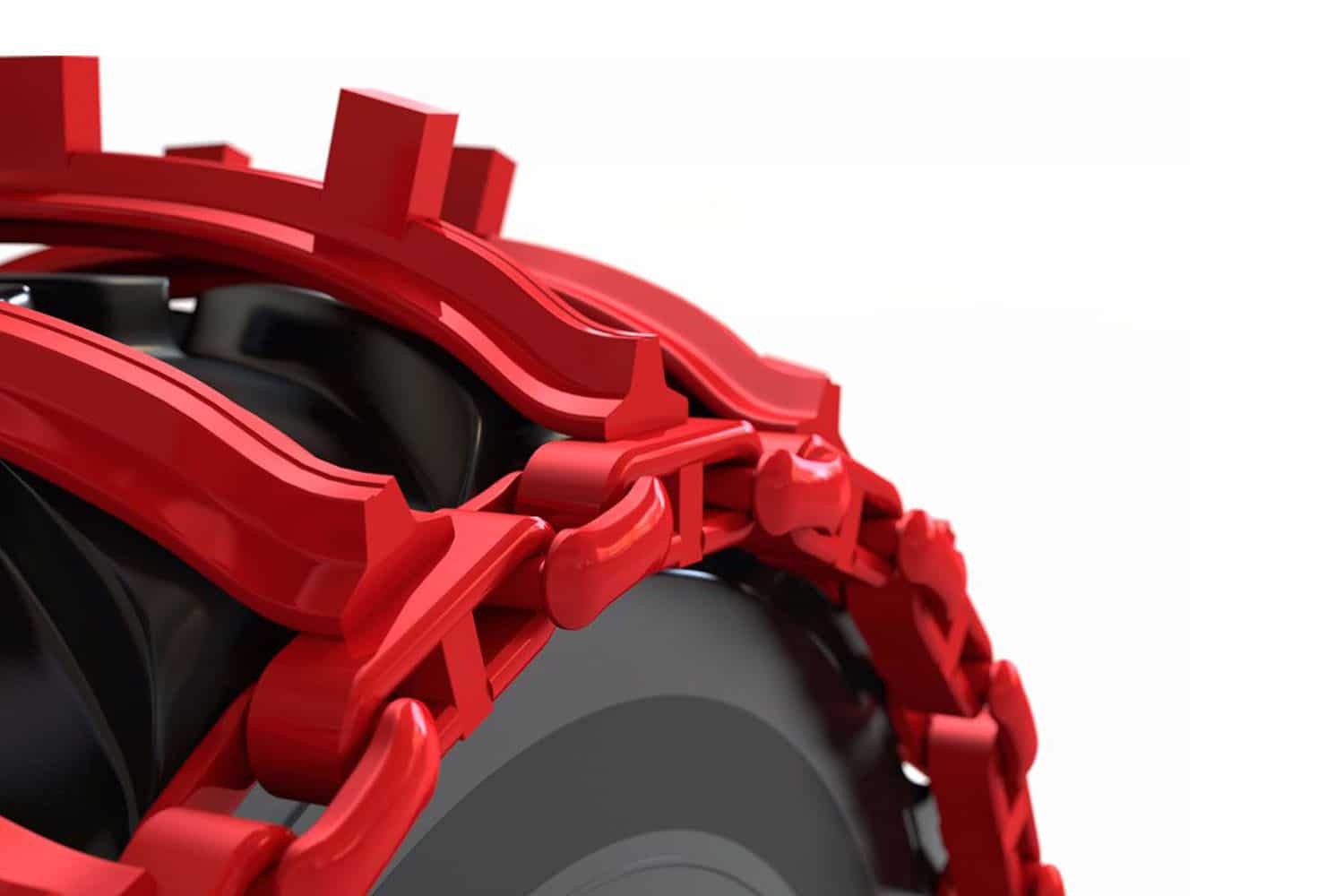 ✅ Optimalizované pre 6-kolesové stroje: Celá konštrukcia je prispôsobená špecifickým požiadavkám 6-kolesových strojov, kde je potrebný maximálny grip na jednej náprave.