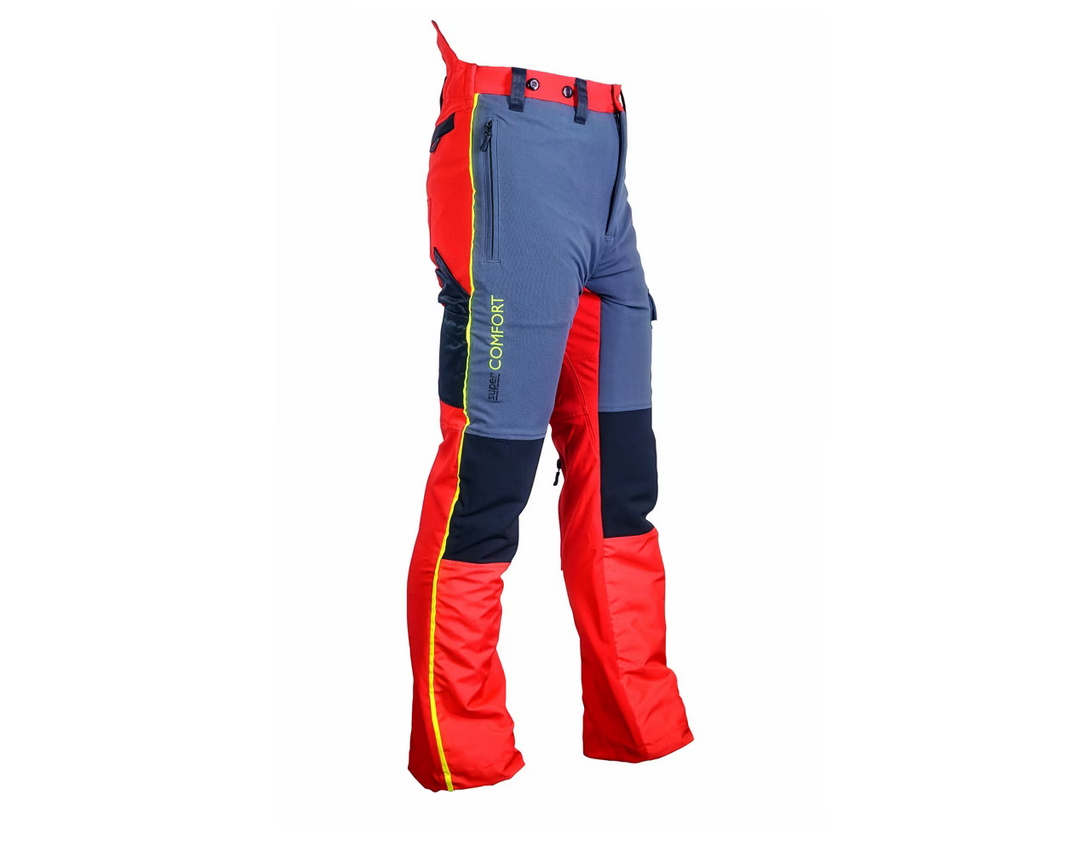 Tieto flexibilné PILČÍCKE NOHAVICE INTERFOREST z modelovej rady Super-Comfort sú navrhnuté pre profesionálov, ktorí vyžadujú nielen bezpečnosť, ale predovšetkým voľnosť pohybu. Na rozdiel od tuhých ochranných odevov, tento model využíva prímes elastického vlákna Lycra® (Spandex), vďaka čomu sa nohavice prispôsobia Vášmu kroku pri chôdzi v strmom teréne alebo pri kľačaní. Bezpečnosť však zostáva na prvom mieste – nohavice sú vybavené masívnym 7-vrstvovým ochranným systémom (6 vrstiev Engtex + 1 vrstva SecTex), ktorý spĺňa normu EN 381-5 Triedy 1 (20 m/s). Kritické zóny sú vystužené materiálom Cordura® (kolená) a nepremokavou Oxfordskou tkaninou (spodná časť), čo z nich robí ideálneho partnera do premenlivého počasia.