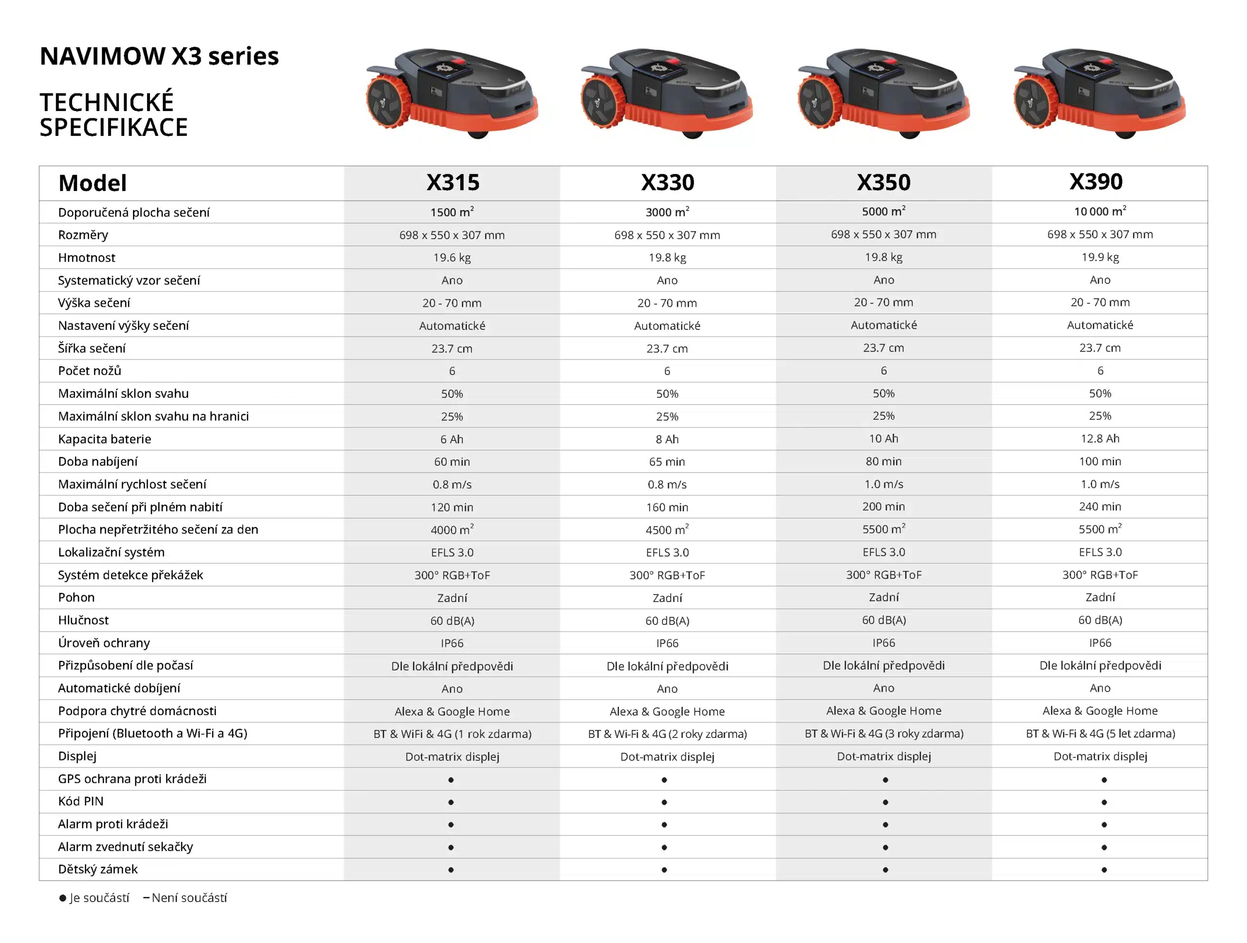 ✔️ Extrémny výkon pre najväčšie pozemky: S obrovskou kapacitou batérie (12.8 Ah) a výkonom pre plochy až 10 000 m² je X390E nekompromisným riešením pre rozsiahle záhrady, parky či firemné areály.
