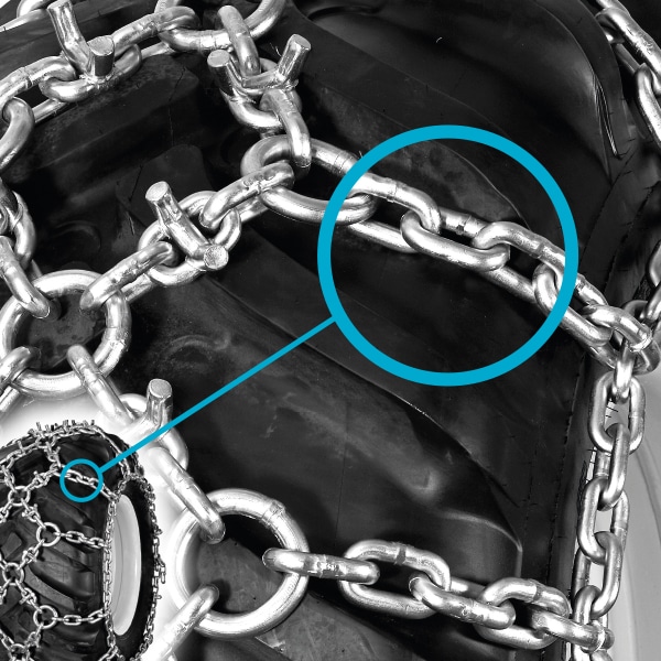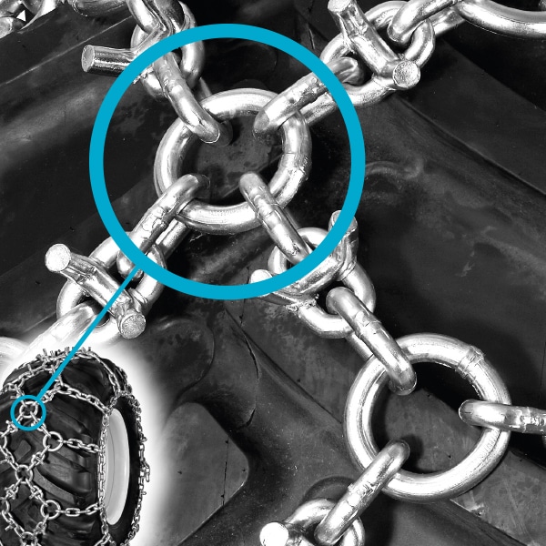 ✔️ Extrémny záber v mäkkom teréne: Každý článok je osadený masívnym, 19 mm hrubým U-hrotom, ktorý sa hlboko zaryje do mäkkého podkladu a poskytuje nekompromisný záber.
