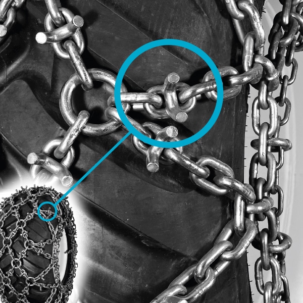 ✔️ Extrémny a spoľahlivý záber: Masívne, 19 mm hrubé U-hroty sú pevne privarené na každom článku a poskytujú nekompromisnú trakciu v hlbokom snehu, blate aj náročnom teréne.