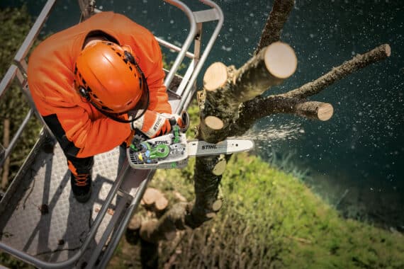 • Najľahšia arboristická motorová píla STIHL MS 151 TC-E s hornou rukoväťou.